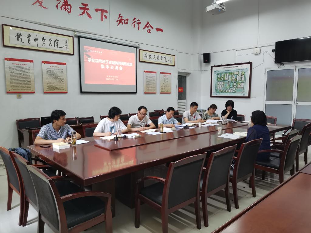 根据主题教育安排,体科院领导班子紧扣学院实际,围绕调研主题,充分利用座谈、交流、走访、问卷等多种方式开展调研,形成调研报告。会上,党委副书记王飞、副院长席莉分别围绕学生考研、大学体育俱乐部改革等调研成果进行交流。通过深入交流研讨,进一步加深了对习近平新时代中国特色社会主义思想的理解领悟,为推动学院高质量发展凝聚了共识、明确了方向、激发了干劲。
