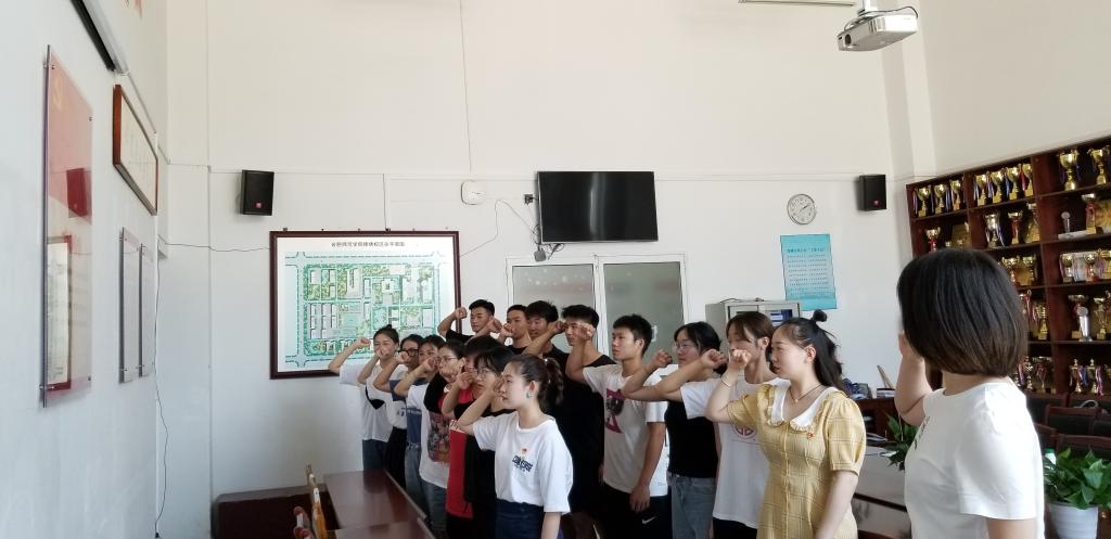 宣誓活动在中文字幕日韩党员活动室举行,学生党支部书记童欣带领全体党员,面向党旗,右手握拳,庄严宣誓。