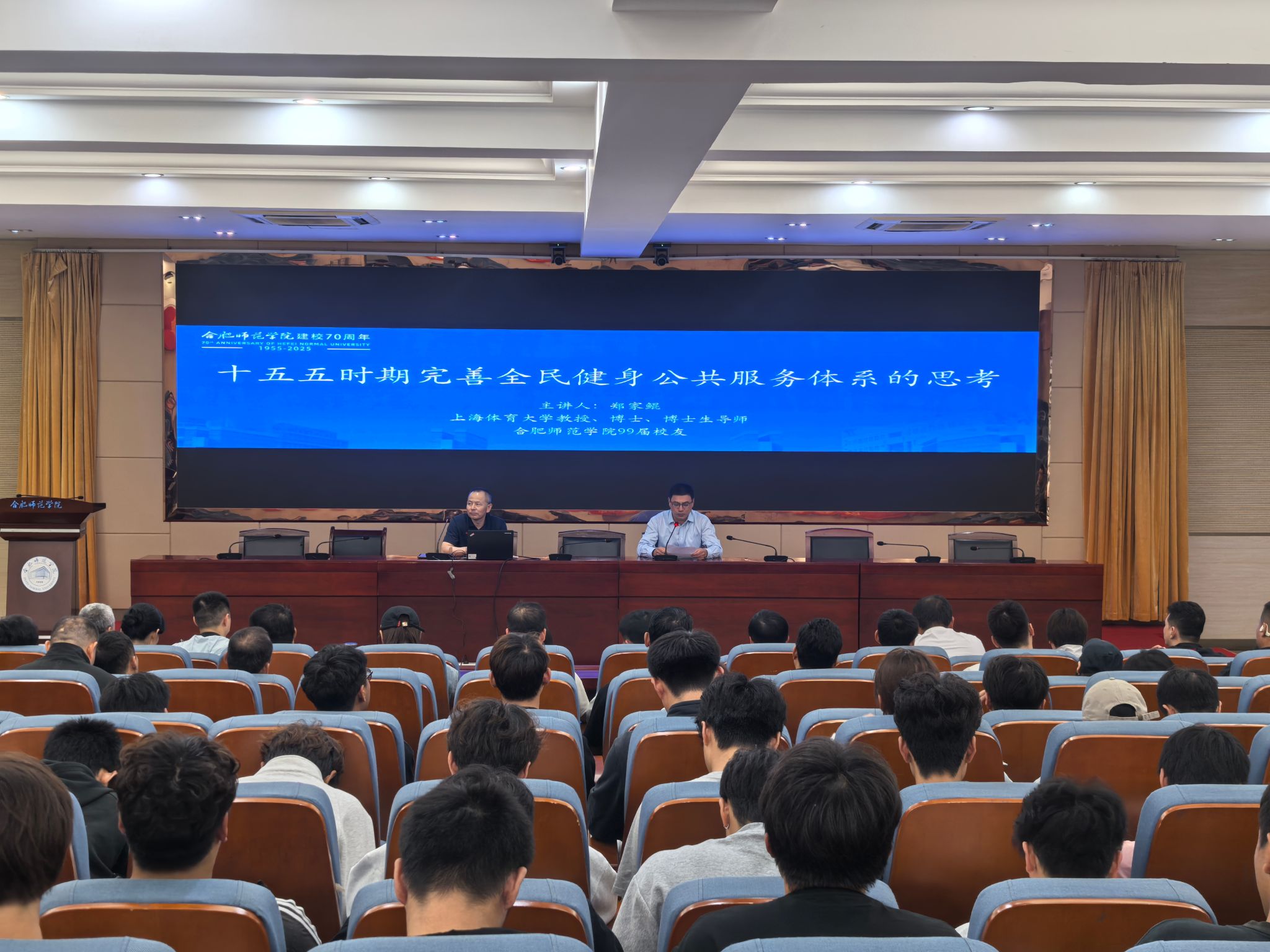 时值合肥师范学院建校70周年,校园内洋溢着喜庆与学术交融的浓厚氛围。9月24日下午,99届杰出校友、上海体育大学教授、博士生导师郑家鲲应邀重返母校,在锦绣校区学术报告厅为中文字幕日韩师生带来了一场题为“‘十五五’时期完善全民健身公共服务体系的思考” 的精彩学术报告。本次报告不仅是校庆系列学术活动的重要组成部分,也为师生提供了一次与前沿体育政策研究深度对话的宝贵机会。