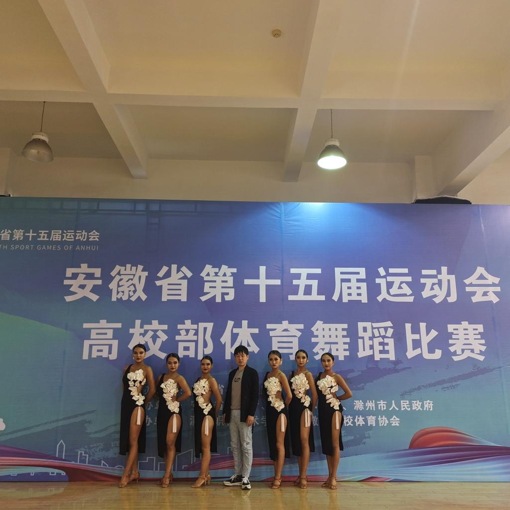 本网讯 4月12日—4月28日,由安徽省人民政府主办,省教育厅、省体育局、滁州市人民政府承办的安徽省第十五届运动会高校部体育舞蹈比赛在滁州职业技术学院举行,本次比赛设有甲组(非体育专业本科院校)、乙组(非体育专业高职院校)、丙组(体育专业本科院校)、丁组(舞蹈表演专业)四个组别。共有来自全省50多所高校的500多名运动员参赛。我院组队参加甲组和丙组的比赛,获得甲组比赛女子团体六人组第一名和丙组比赛女子六人组第二名,我院公体体育舞蹈项目首次在省运会上获得冠军。