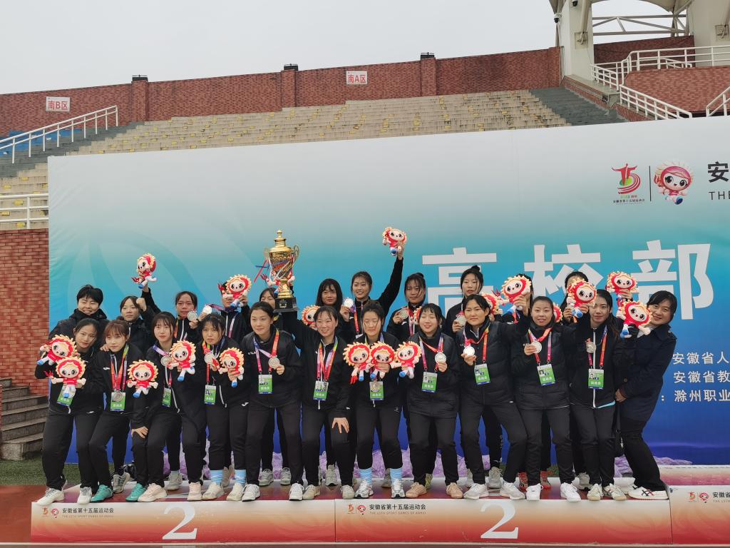 本网讯 4月9日-24日,由省政府主办,省教育厅、省体育局、滁州市人民政府承办的安徽省第十五届运动会高校部足球比赛在滁州职业技术学院举行。本次比赛设有甲组(非体育专业本科院校)、乙组(非体育专业高职院校)、丙组(体育专业本科院校)三个组别。共有来自全省41所高校的1410名运动员参赛。我院组队参加丙组男足和女足的比赛,获得丙组男足亚军、女足亚军。