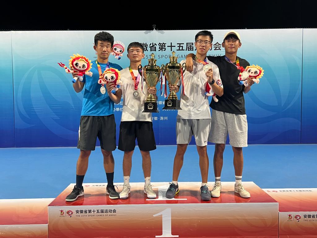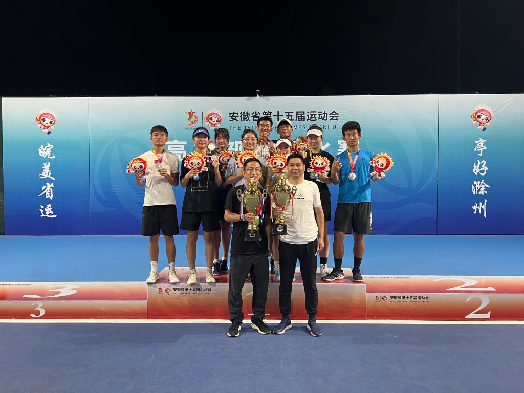 本网讯 7月21日,安徽省第十五届运动会高校部网球比赛在天长中学进行。在当天结束的丙组男子团体、女子团体决赛中,首次组队参加省运会的我院网球队获得佳绩,双双斩获银牌。