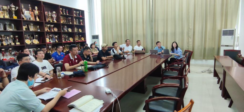 本次培训会邀请了安徽沃屹智能装备有限公司销售经理吴子倩、技术总监王乾睿做现场培训,王乾睿总监就俱乐部系统的机构设置、各模块功能介绍、系统整体框架与结构、队伍的创建审核与成员管理、俱乐部的教师与会员注册及升级、成绩录入与修改方法、后台审核操作步骤以及定制的功能团队积分管理的解决方案做了详细介绍,并对校园跑步系统功能、学生跑区和点位、跑步模式的设置、学生每学期跑步任务的配置与限定规则做了简单介绍。俱乐部所有负责教师认真观看了培训,做了详细的记录,并就实际操作和分数比例等有关问题进行交流和探讨。