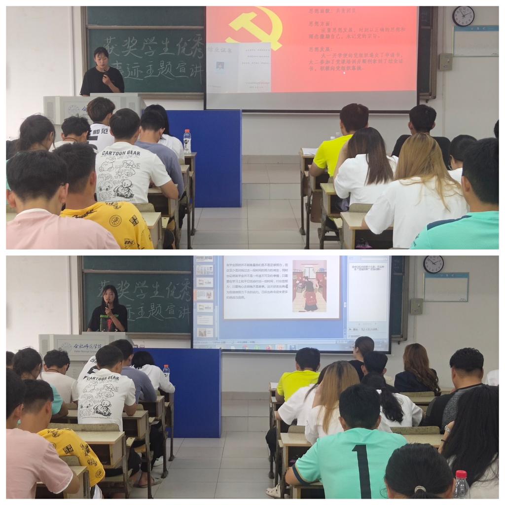 本网讯 6月10日中午,中文字幕日韩在博约楼211教室举办国家奖学金、国家励志奖学金获得者优秀事迹宣讲会。2018级国奖获得者赵萍萍同学,以及2018级、2019级国家励志奖学金获得者徐慧、王聪、黄圆怡等6名同学受邀作主题宣讲,学院2020级全体同学参加了此次宣讲活动,宣讲会由资助辅导员张康康老师主持。