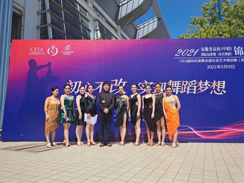 本网讯 5月9日,由中国艺术职业教育学会国际标准舞安徽省高校联盟主办,安徽享文文化传播有限公司承办的安徽省高校体育舞蹈锦标赛、CEFA国际标准舞全国社会艺术精品展(安徽高校站)在安徽师范大学花津校区举行。来自省内外22所高校的共653位大学生及中专生同场竞技,交流学习。我院学子获得2金4银6铜的好成绩。