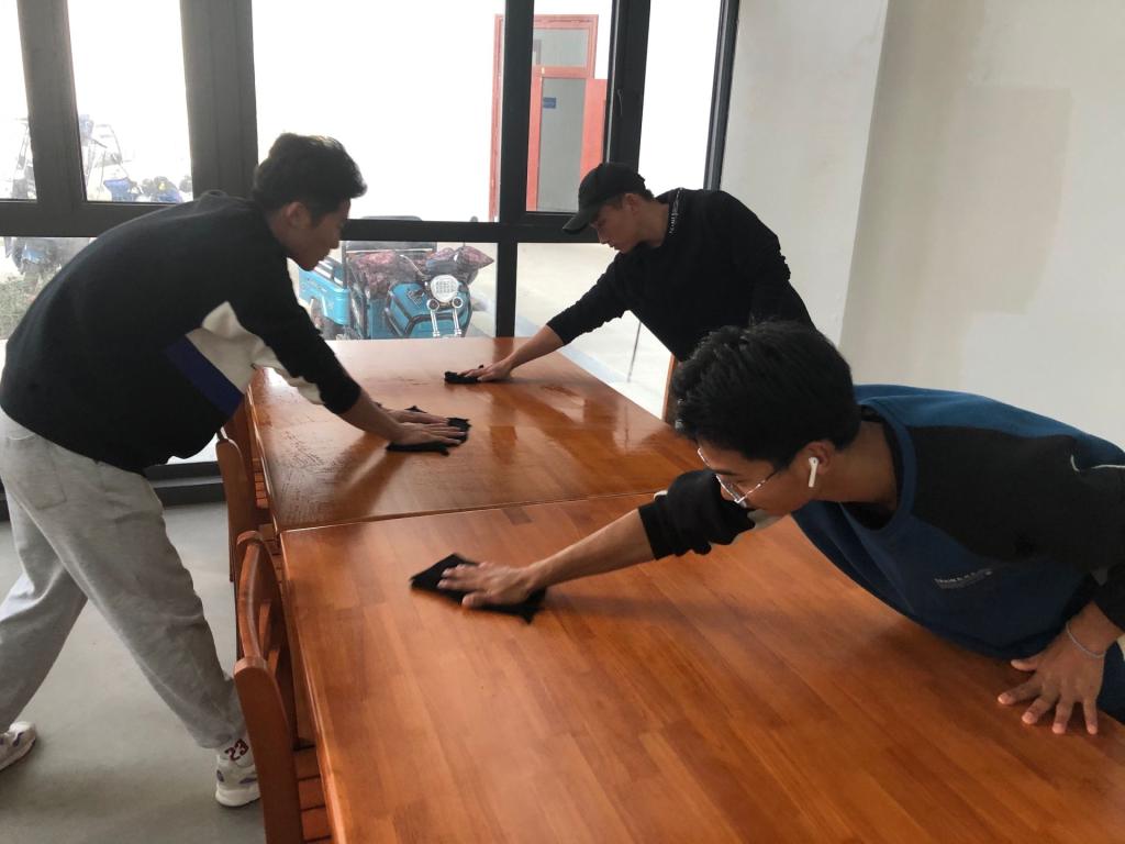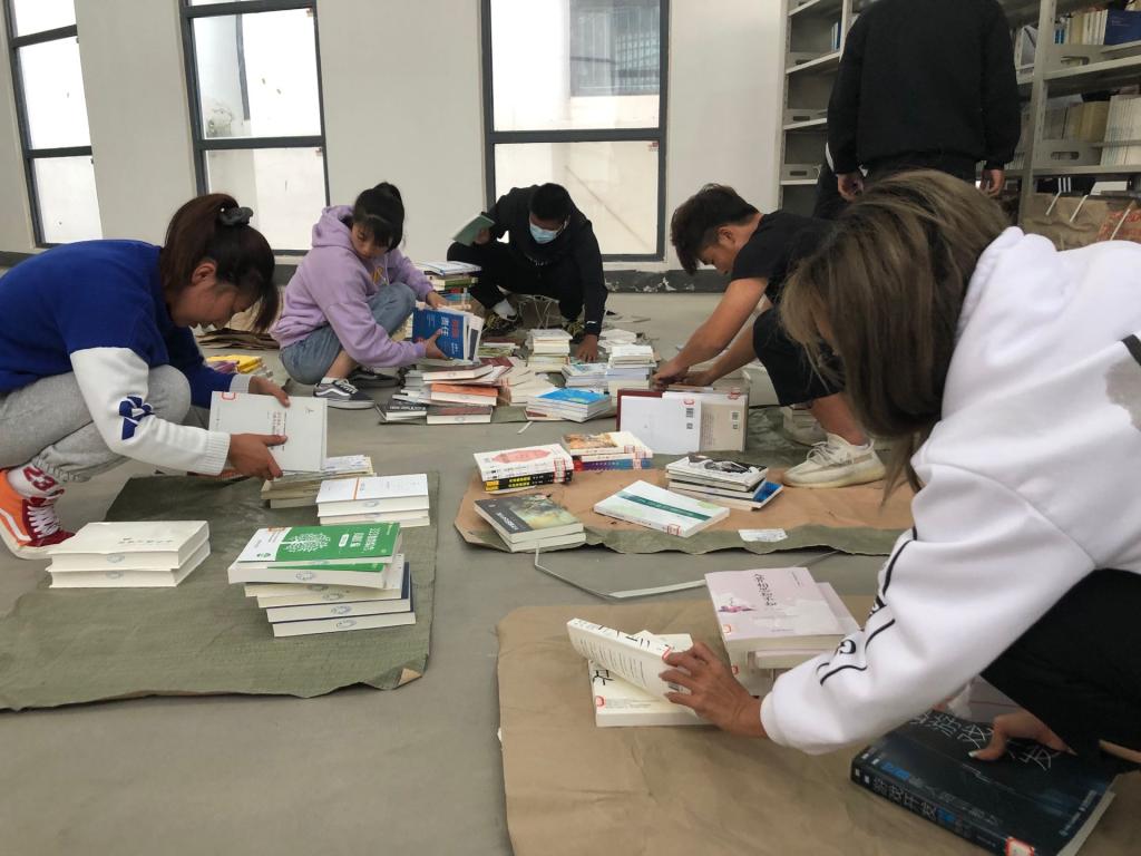 滨湖校区图书馆劳动实践:新书包裹拆封后分类整理,按照图书编码放置书架,打扫自习室的卫生及部分区域的卫生消毒等。