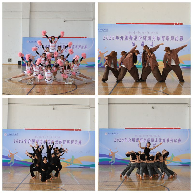 闭幕式上,街舞俱乐部、体育舞蹈俱乐部和啦啦操俱乐部为大家带来了精彩纷呈的教学汇演。婀娜多姿的伦巴舞、激情昂扬的恰恰、诙谐俏皮的牛仔、热情奔放的桑巴、舒缓典雅的华尔兹,充分展示了大学体育俱乐部制教学的显著成效,展现了合师学子卓越的艺术天赋和出色的现场表现力。