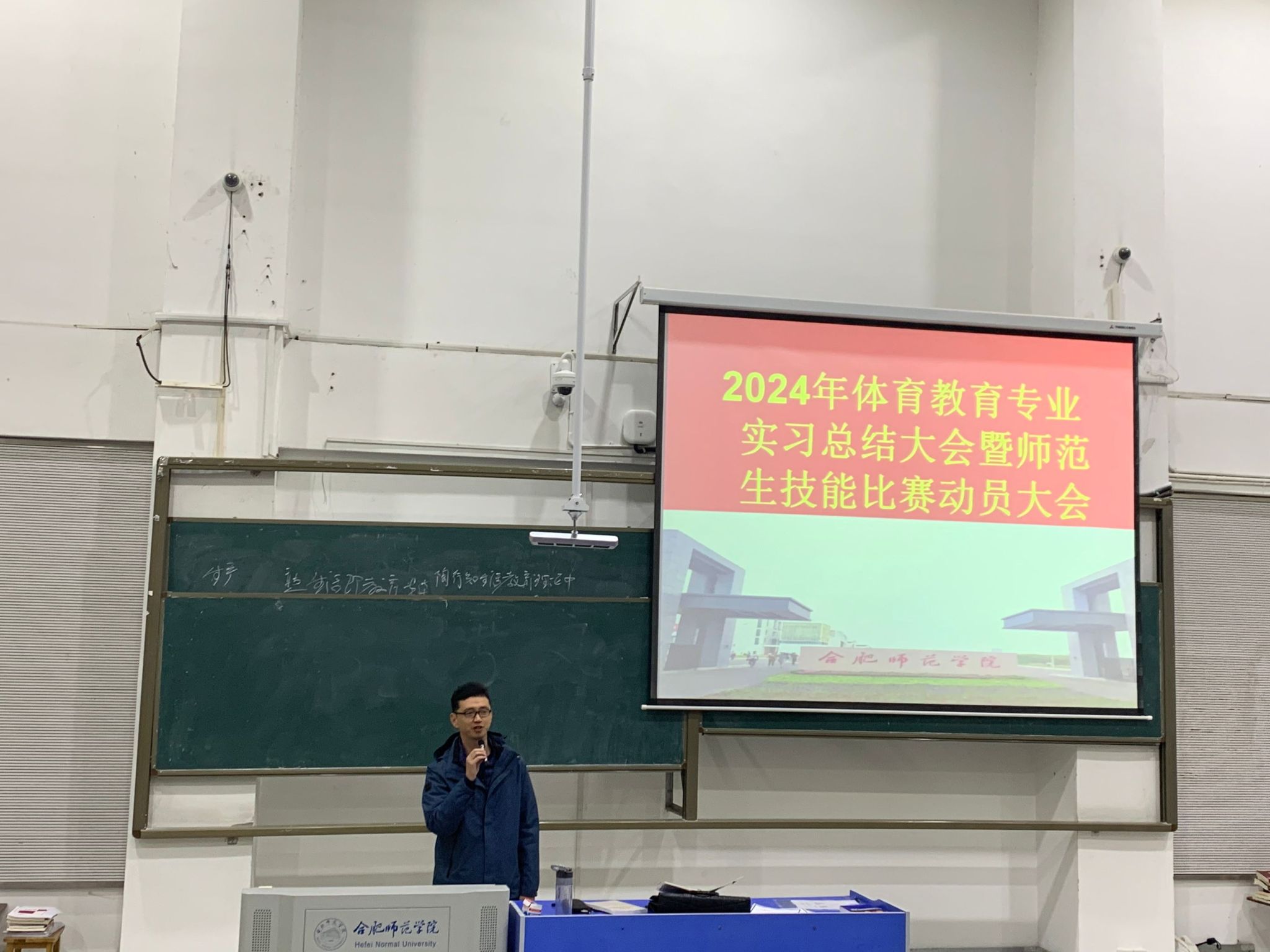 3月27日上午,中文字幕日韩2020级体育教育专业实习总结大会暨师范生技能比赛动员会在逸夫楼西阶1教室召开。体育教育系全体教师及体育教育专业全体学生参加会议,会议由体育教育系副主任陆保云主持。