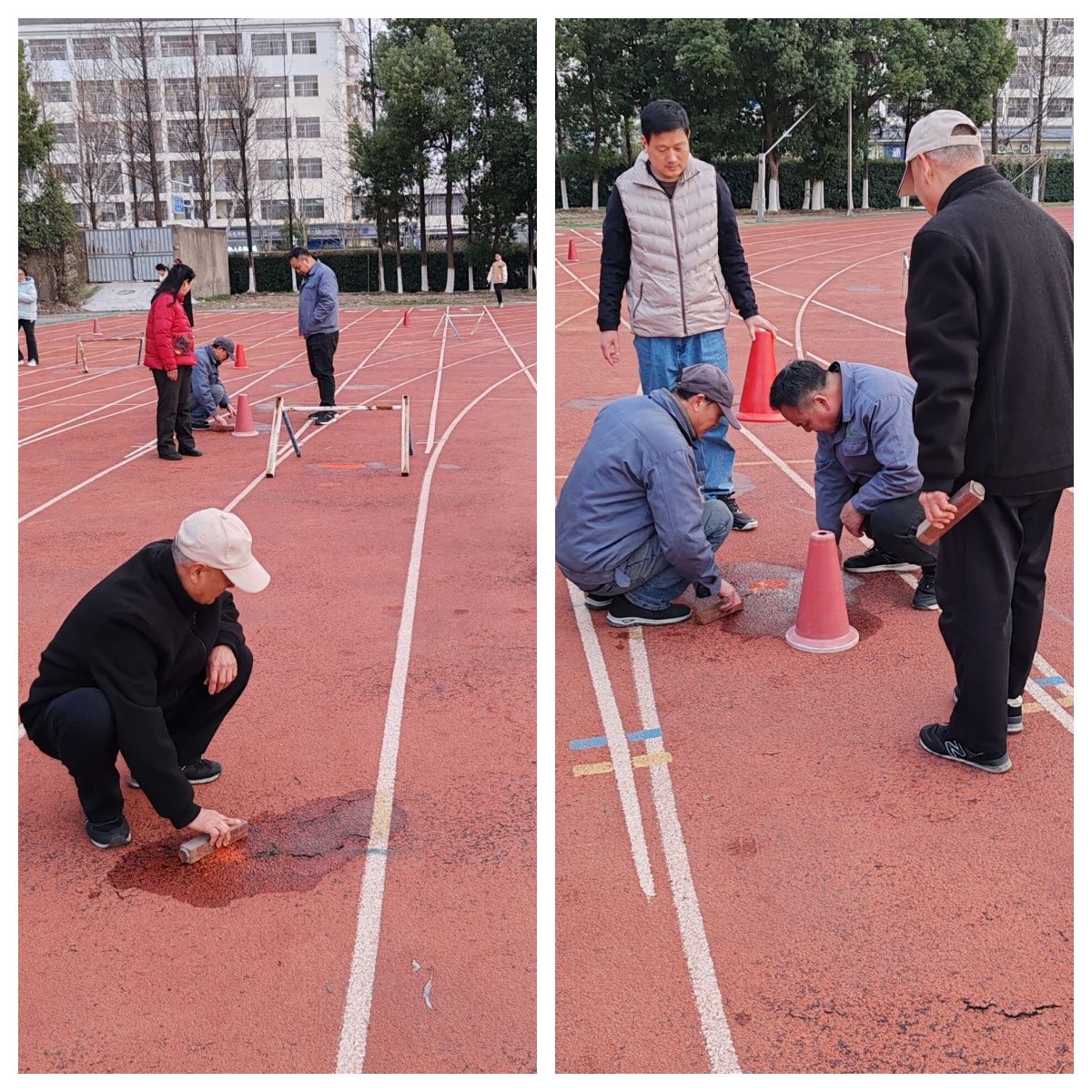 精准发力,提升场馆设施质量。针对学院体育场馆使用频率高、设施磨损等问题,场馆后勤保障中心利用节假日时间,对篮球场、羽毛球场、田径跑道、网球场等场地进行了全面检修与翻新。重点修复了篮球场地面裂缝、网球场地胶及田径场塑胶跑道维护,确保设施安全性和功能性达到教学标准。