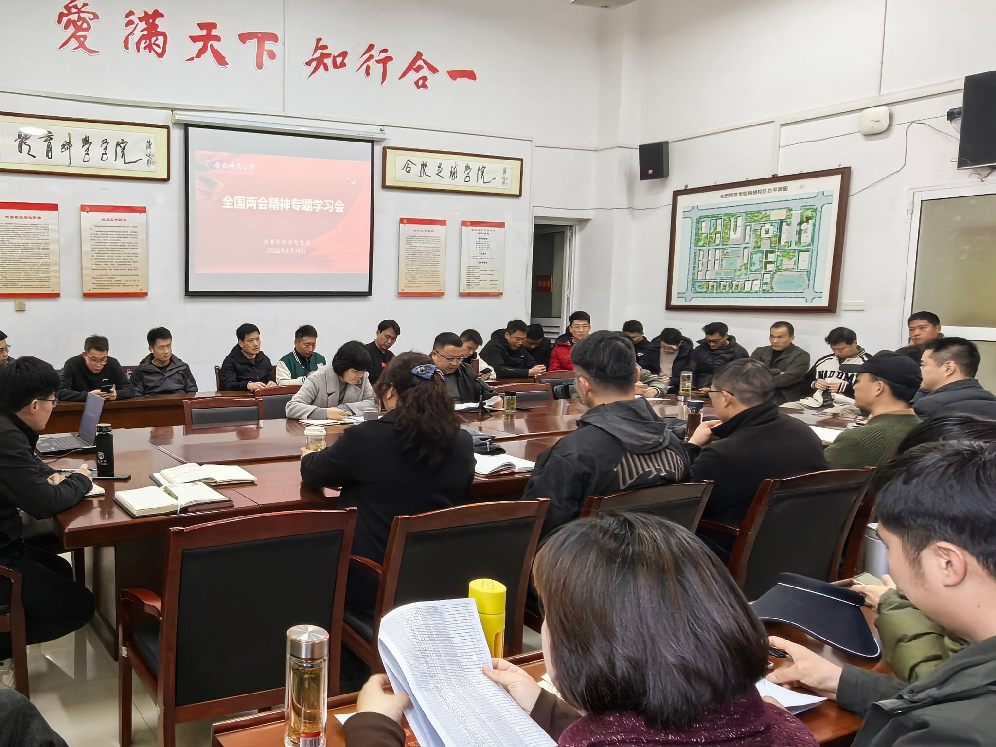 会议要求,全体党员干部和师生要提高政治站位,强化责任担当,深入学习领会习近平总书记在全国两会期间的重要讲话精神以及全国两会精神的重大意义,将内涵要义融入教学科研全过程,主动对接国家战略需求,在“体教融合”、体育科技创新、人才培养等领域展现新作为。