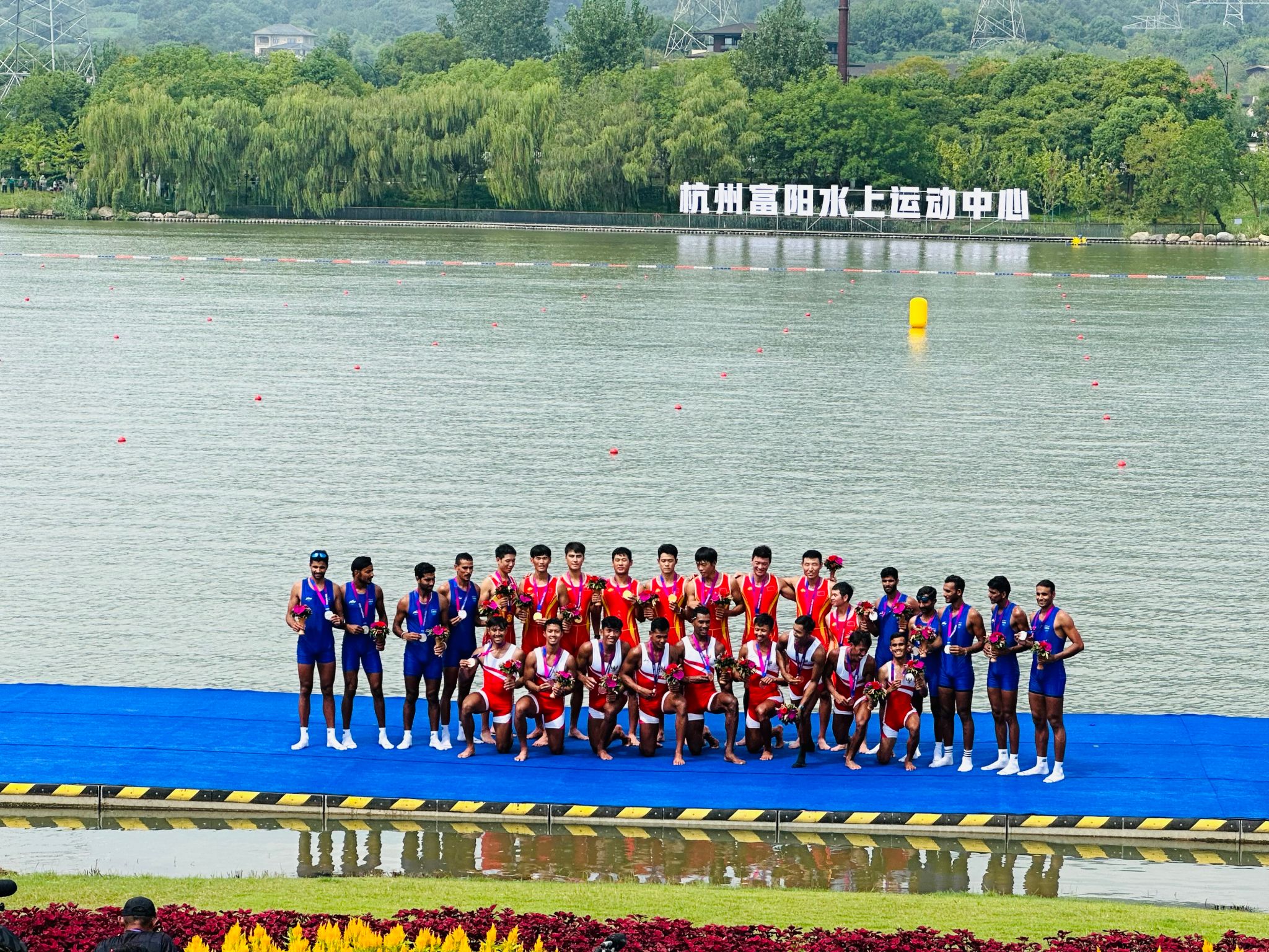 本网讯 9月23日晚,第19届杭州亚运会在杭州开幕。9月24日上午在富阳水上运动中心举行的第19届杭州亚运会赛艇男子八人单桨有舵手决赛,学院2020级运动训练专业徐桥同学与国家队队友,一起顽强拼搏,稳定发挥,最终以5分40秒17的成绩勇夺冠军,为中国代表团夺取第八金,同时,也是我省在本届亚运会上的首枚金牌。