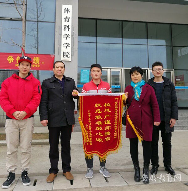 2018年3月6日,获救老人家属辗转半年终于寻找到了救命恩人汤得进,老人的儿子儿媳两人代表全家专程从霍邱县来到合肥师范学院锦绣校区赠送锦旗,对汤得进扶危救困的果断义举表达深深感激之情,并对合肥师范学院培养出这样优秀的大学生表示钦佩。汤得进说,老人的家属曾打过电话表示想将医疗费还给他,但是他拒绝了,只希望老人能健健康康。老人家属突然来到学院也让他感到十分意外,但同时他也觉得这是一种鼓励,一种社会对自己见义勇为事迹的认可与回应。他表示不管被救者的家属认不认识他,能不能找到他,他都不在意,只求能做到无愧于自己的良心就好。