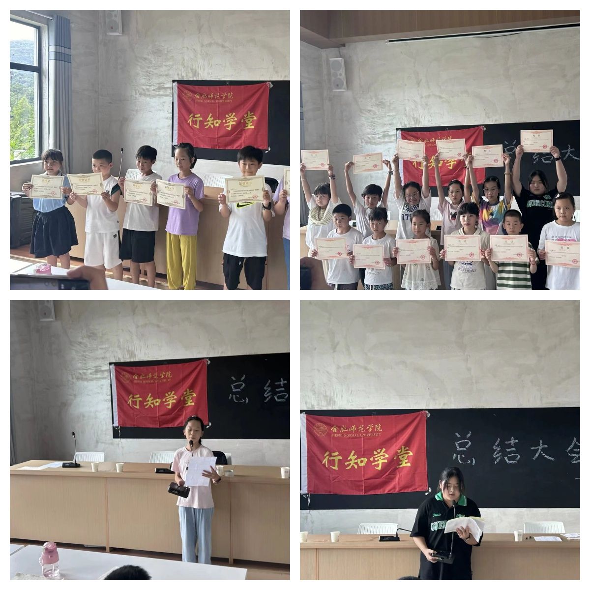 结业仪式上,大家共同观看了南陵县烟墩镇行知学堂汇报展演,并为小学员们分发奖品和礼物。“小学员”代表谢浩然表示,在15天的行知学堂活动中不仅学到了许多课外知识,开阔了视野,还收获了师生情、友情。“小学员”家长代表赵文静对“小先生”的无私奉献和付出表示衷心的感谢与充分的肯定。本次南陵烟墩镇行知学堂“小先生”负责人来自中文字幕日韩2023级体育教育(师范)专业的潘志慧对此次行知学堂活动做了简要汇报,她汇报了南陵县烟墩镇行知学堂活动的开展内容及取得的效果,对当地政府和小学员及学员家长表示由衷的感谢,并对小朋友送上美好的祝愿。