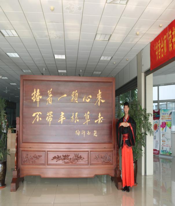 一所学校如果要塑造和培养一个人,那首先就要从他的思想开始。正是在陶行知教育思想的引领下,2013年夏天,曹旺旺来到合肥师范学院,深深受到行知文化的感染与熏陶,那初刻在心中“爱满天下,知行合一”的合师校训以及“自强不息,追求卓越”的合师精神。他走在脚下的大德路、双全路,看着架在溪流之上的感恩桥、爱心桥和林立在校园中的躬行楼、图书馆,瞻仰着让他最敬佩的陶行知先生的雕塑,从此,“行知”就在他的心中生了根,发了芽。他一直受到陶行知先生教育理念的影响,因此他连续四年参加学校的行知学堂工作建设。当他看到一幅幅纯真的笑脸和孩子们渴望的目光,他的内心备受鼓舞,所以,毕业后他选择成为一名西部计划志愿者、选择到大别山区进行特岗教师支教。作为一名中共党员,他正在亲身践行“全心全意为人民服务”的根本宗旨。