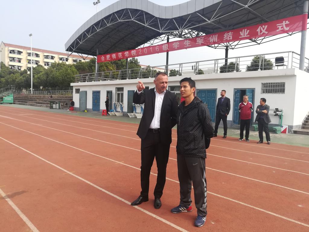 在我院代表的陪同下,塞尔维亚伏伊伏丁那俱乐部亚历山大一行现场观摩了我院篮球、足球、手球等体育活动的现场教学与训练。